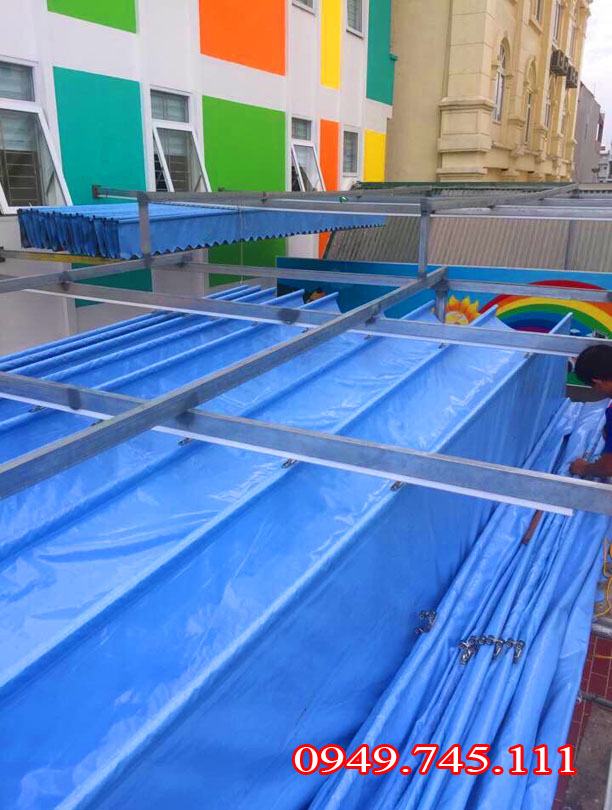 - Bạt xếp lớp di động che nắng mưa phù hợp với không gian lớn như các sân quán bar sân trường học, sân vườn vườn.